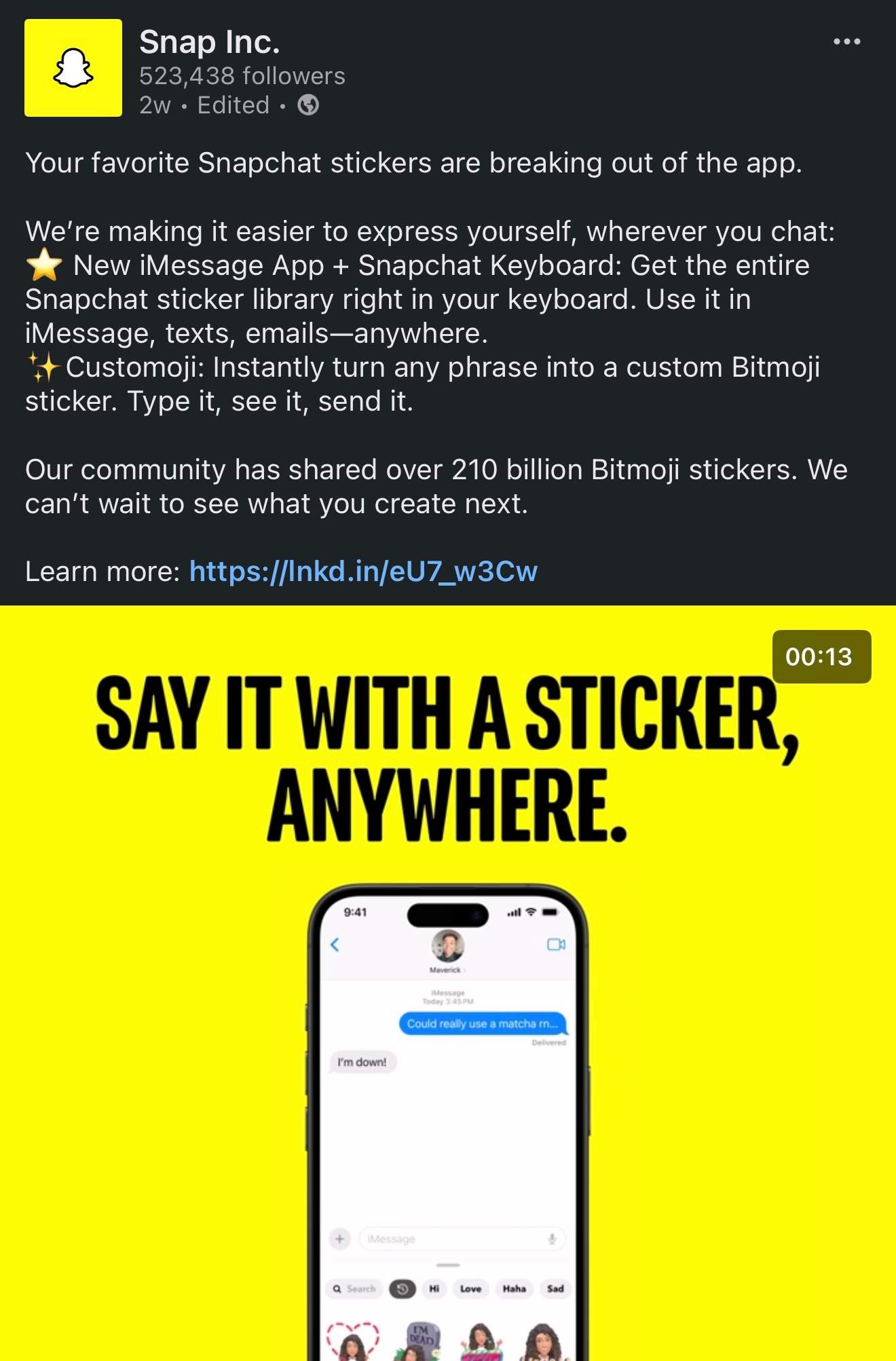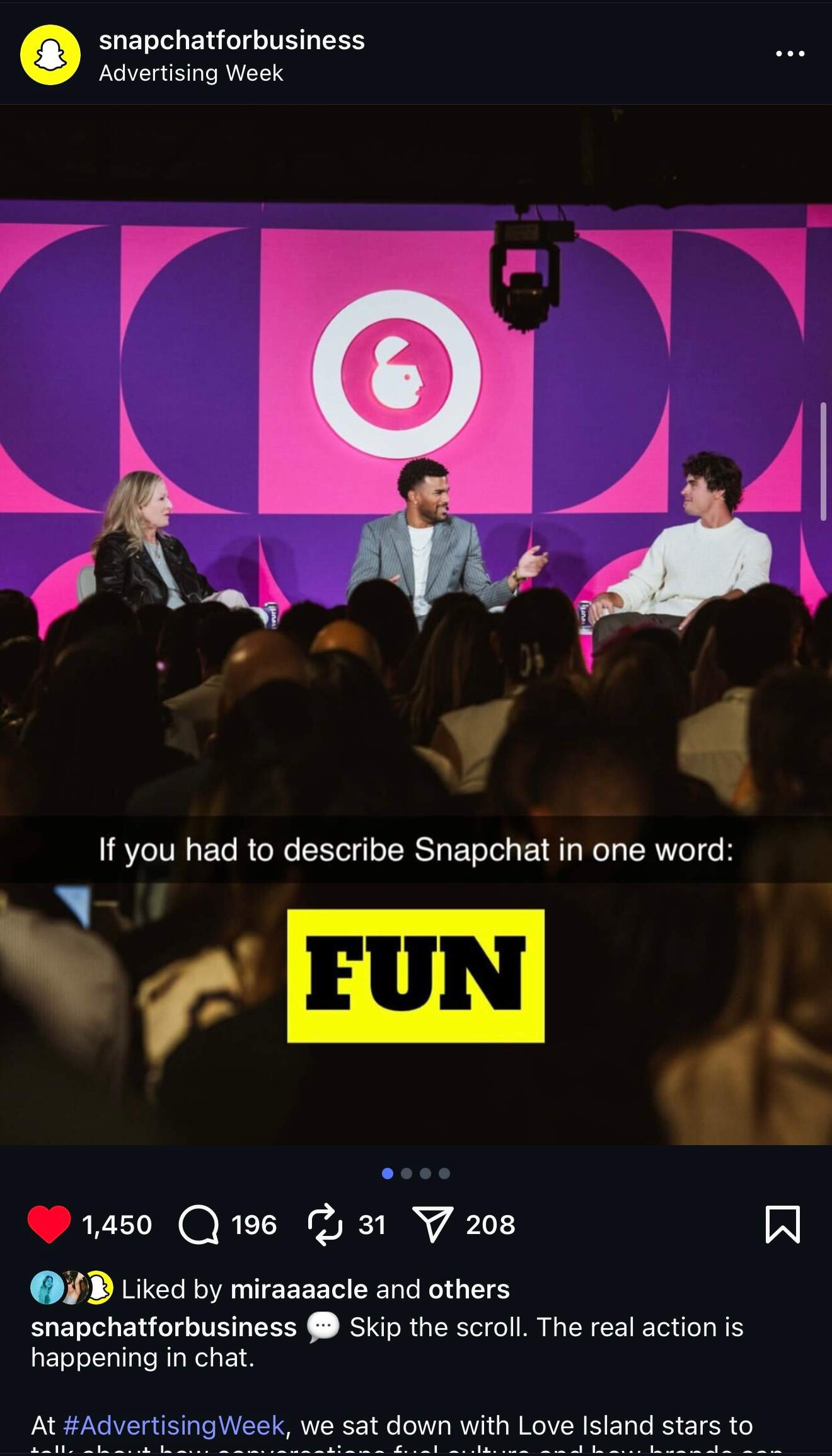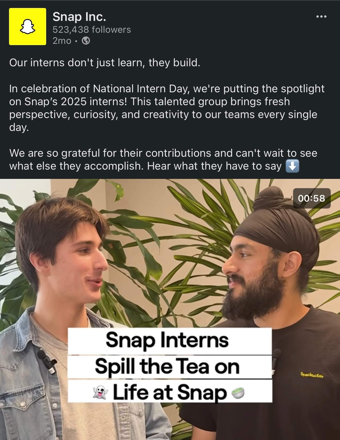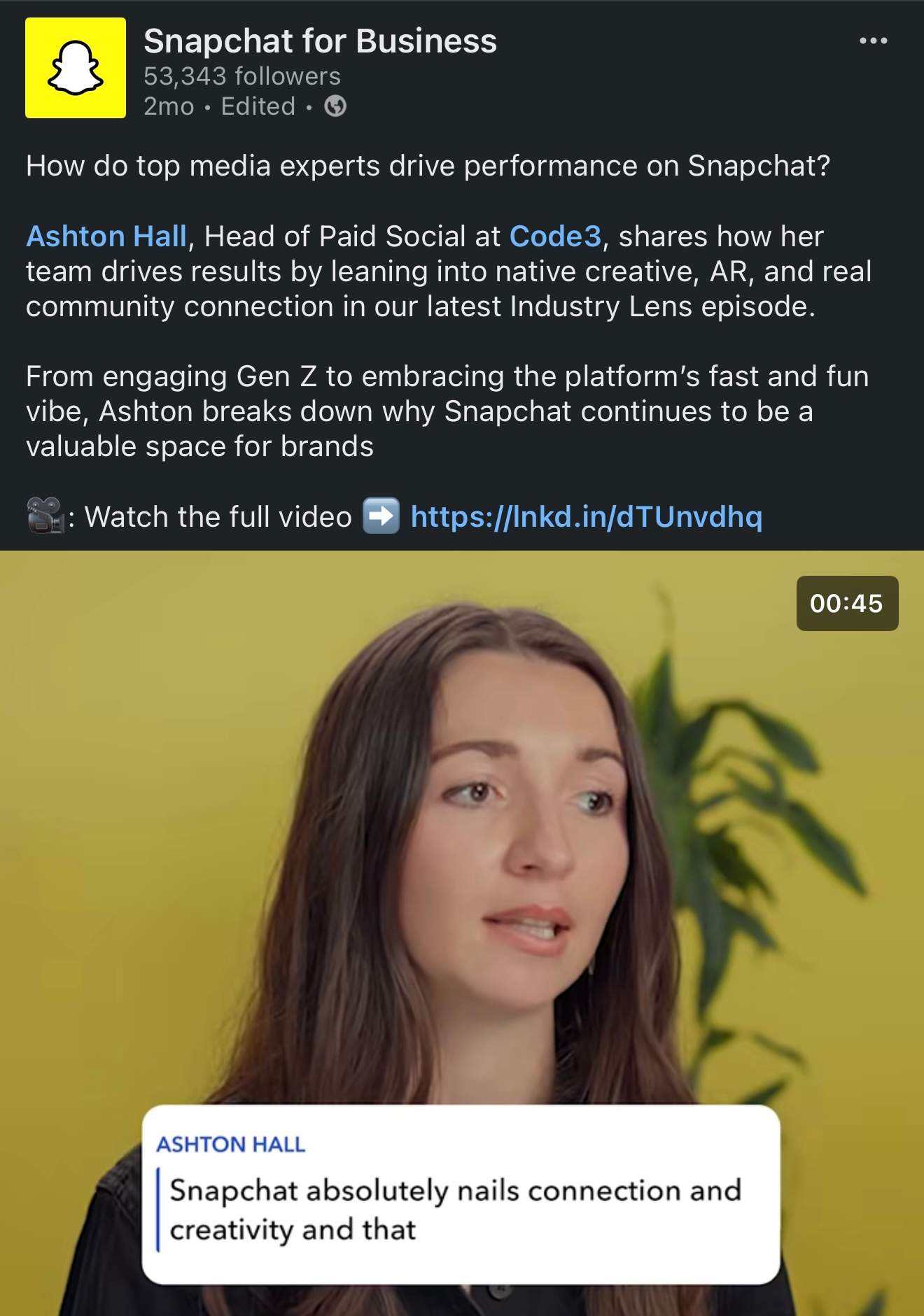 Launched Snap for Business’ first Instagram account, developing its strategy, voice, and creative direction to expand reach to 2M in first 30 days.